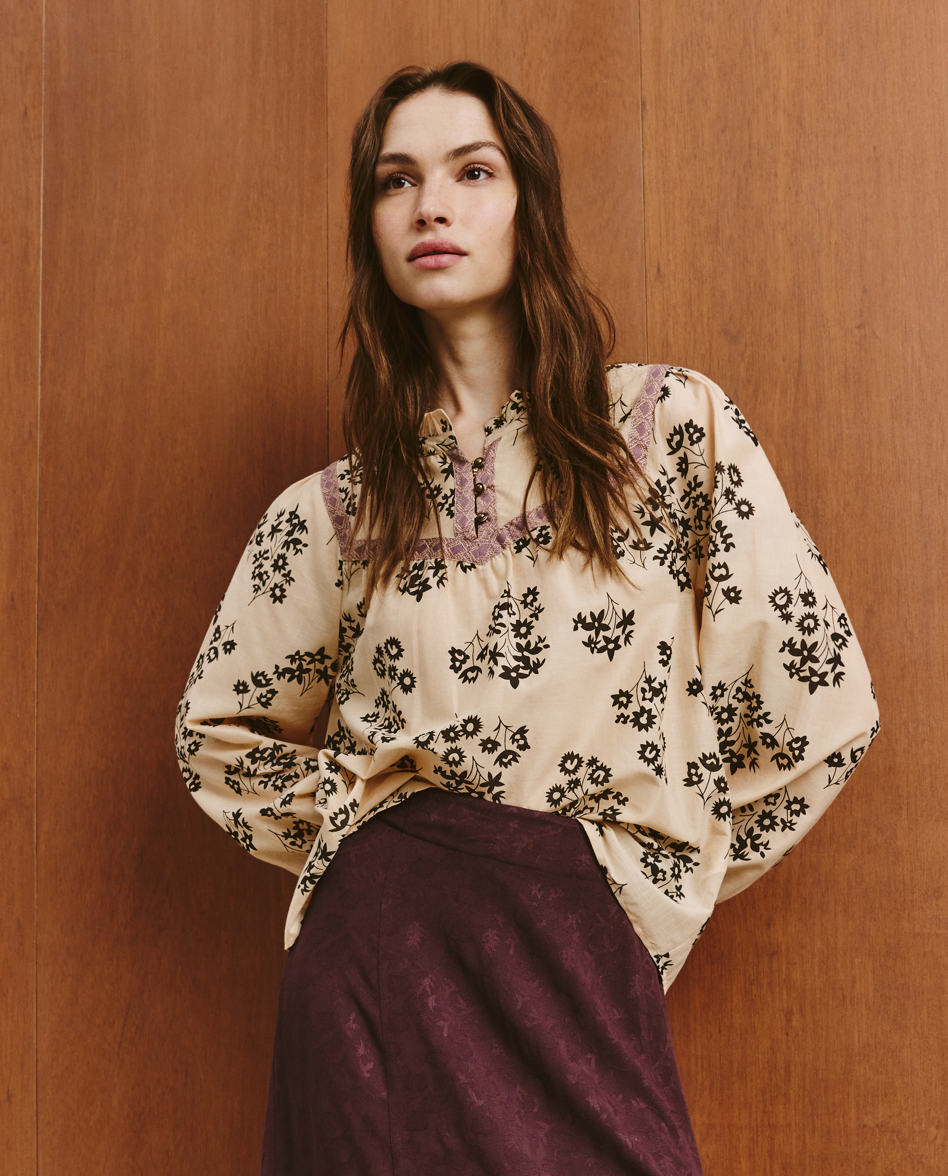 - Southern Cotton - Blusa estampada de manga larga de mujer
