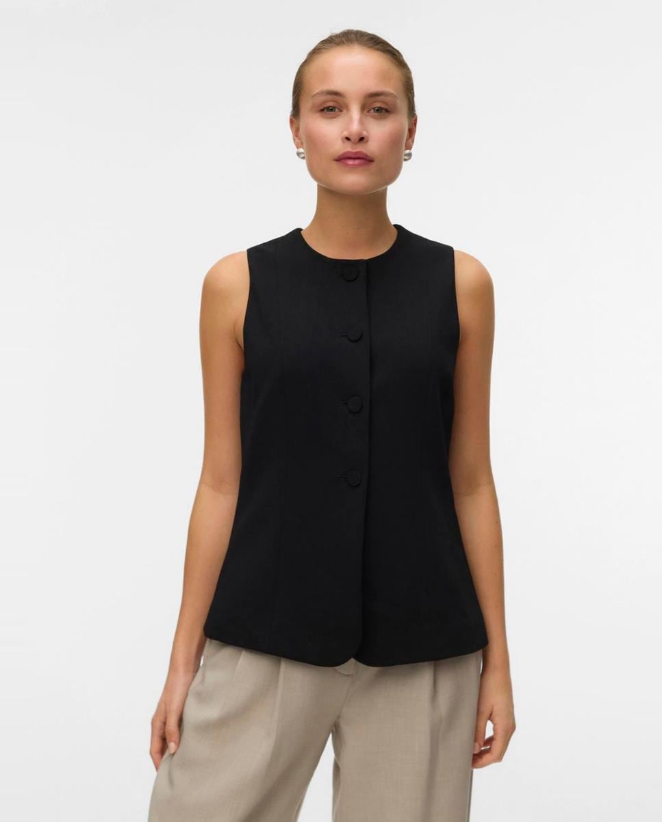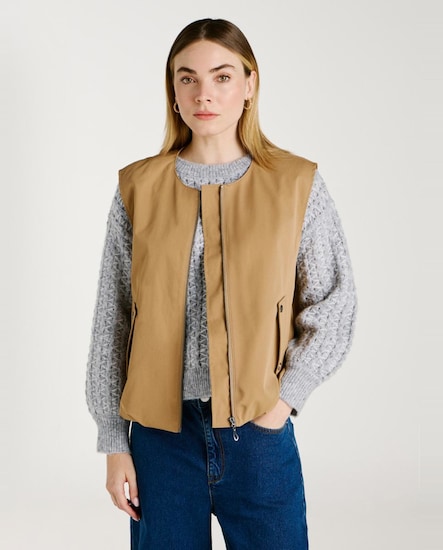 Chaleco entallado de mujer con peplum evasé y cuello alto