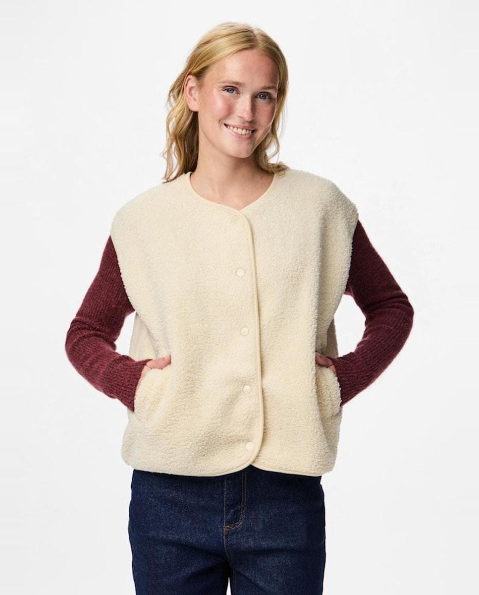 Chaleco de mujer en polipiel con detalle de borreguillo