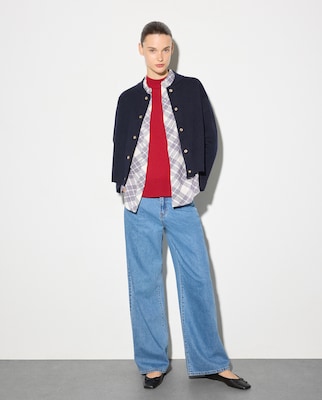 Jersey de mujer de rayas con cuello alto abotonado