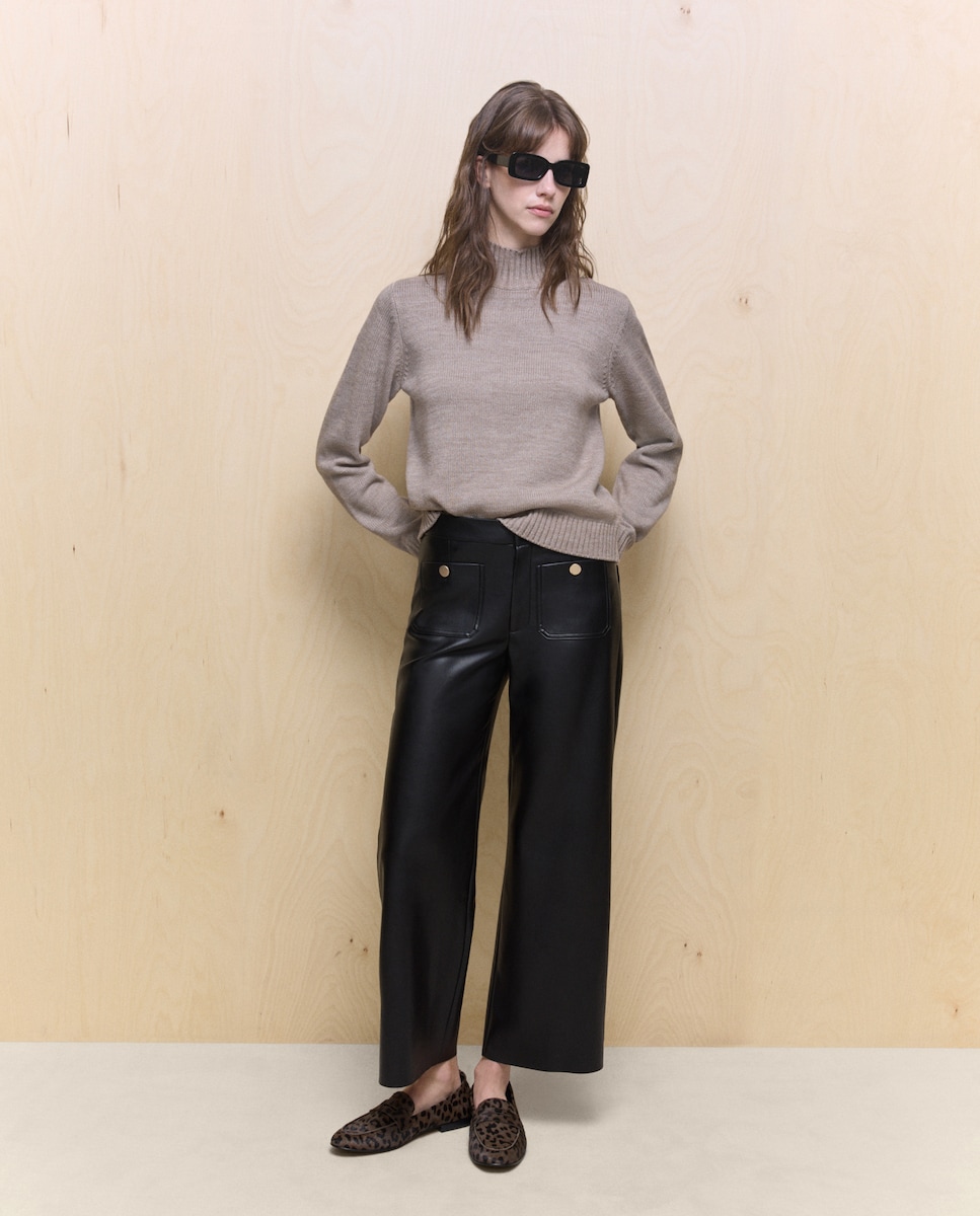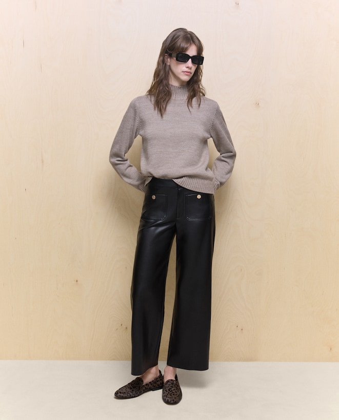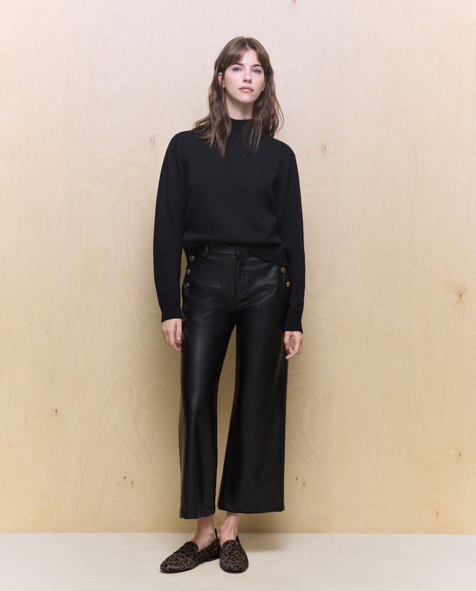 Pantalón de mujer efecto piel con botones