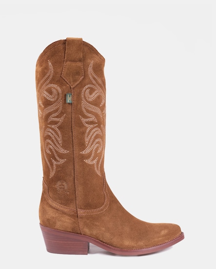 Botas de mujer tipo cowboy en serraje con bordados y tacón bloque
