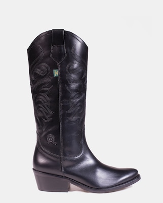 Botas de mujer tipo cowboy en piel con bordados y tacón bloque