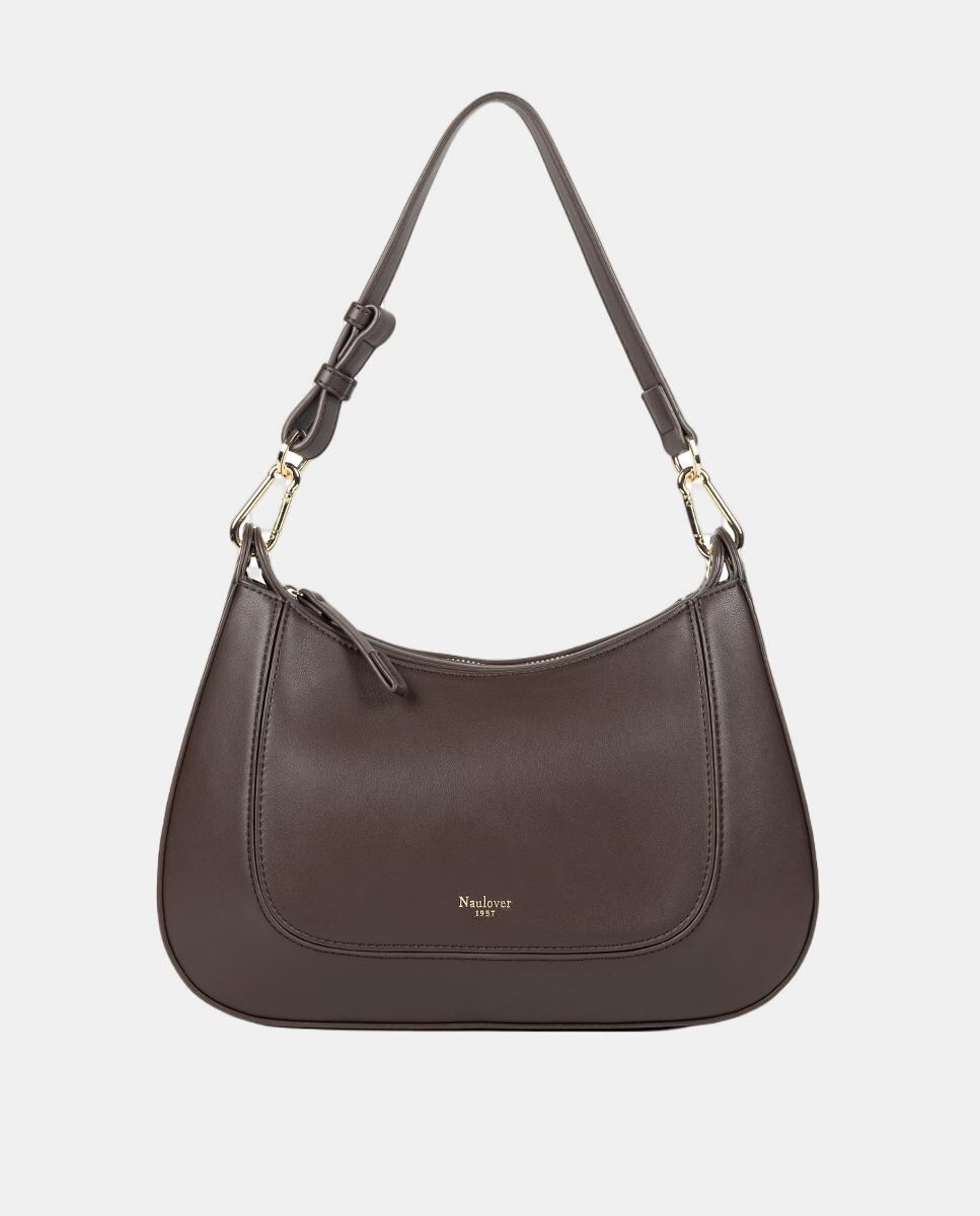 Bolso de mujer formato media luna, tipo baguette rígida.