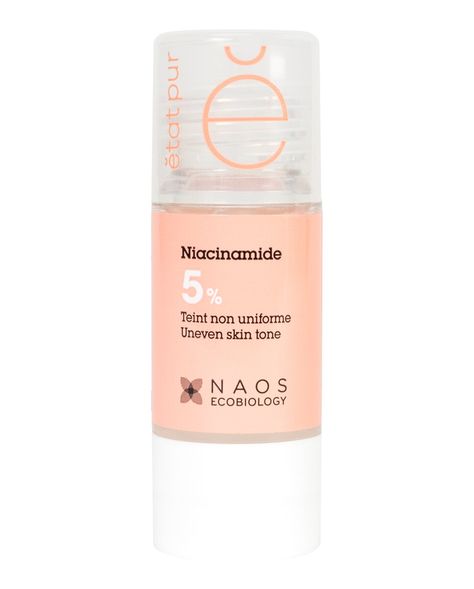 El Pure Active Niacinamide de Etat Pur es un producto que unifica el tono de la piel y mejora su luminosidad. Contiene niacinamida, una vitamina que trata problemas de pigmentación, piel desigual y sensibilidad cutánea. Este tratamiento ayuda a lograr un tono uniforme y luminoso, además de ofrecer protección contra agresiones externas. La niacinamida actúa sobre la transferencia de melanosomas, reduciendo la pigmentación y mejorando la uniformidad de la tez, previniendo la aparición de manchas. También combate la pérdida de brillo y el amarillamiento de la piel al prevenir la glicación de las proteínas. Además, este principio activo reduce el enrojecimiento al influir en la síntesis de citocinas inflamatorias. Se sugiere aplicar 4 gotas en todo el rostro antes de la crema hidratante, como parte de un tratamiento de 8 semanas. Es un producto unisex.