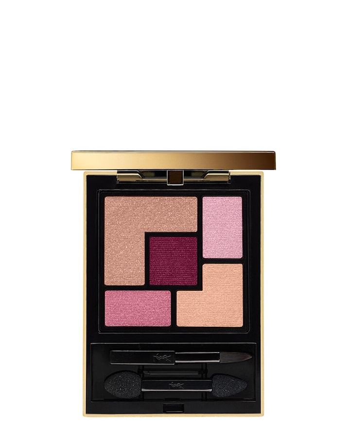 La paleta de sombras de Yves Saint Laurent incluye cinco tonos prêt-à-porter, diseñada para crear una mirada impactante. Se presenta en un estuche con un diseño gráfico que refleja la estética de la Maison, homenajeando los modelos 'Mondrian'. La fórmula de última generación se adapta al párpado, proporcionando un acabado uniforme y denso. Los cinco tonos complementarios permiten diversas combinaciones, desde un uso monocromático hasta mezclas más audaces. Ofrece una variedad de acabados, que incluyen mate y metálico, así como texturas que van desde densas hasta transparentes, brindando múltiples opciones para realzar la mirada. La paleta está inspirada en el estampado de pantera de la marca, celebrando la feminidad y la fuerza de la mujer YSL.