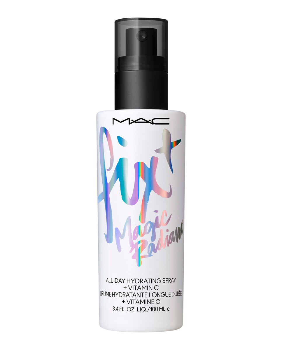 La bruma hidratante Fix+ Magic Radiance de M.A.C. es un producto diseñado para mantener la piel hidratada y radiante. Contiene vitamina C, ácido hialurónico y aceites esenciales que proporcionan hidratación intensa y nutrición a la piel. Su aplicación deja la piel suave y flexible. El aplicador permite una aplicación fácil y uniforme. Es adecuada para todo tipo de pieles y ha demostrado aumentar la hidratación en un 196% de forma inmediata y en un 131% a las 8 horas. También mejora la luminosidad de la piel en un 68%. Este producto ha sido dermatológicamente y oftalmológicamente testado, y es no acnegénico. Se puede utilizar antes del maquillaje para preparar la piel o después para fijar el look. También es útil para refrescar el rostro en cualquier momento. Para aplicarla, se debe agitar bien, cerrar los ojos y la boca, y vaporizar a una distancia de 30 cm del rostro.