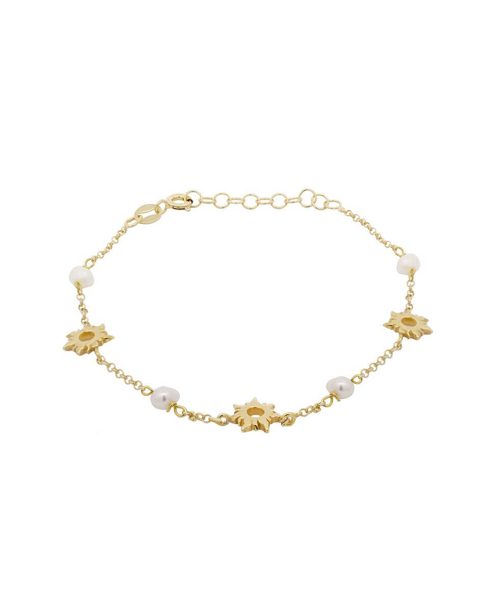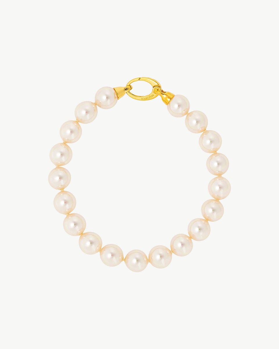 Pulsera Lyra en plata dorada y perlas redondas blancas de 10mm