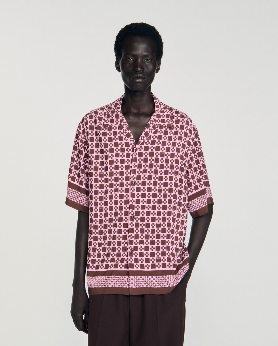 • Imagen 0 de Camisa fluida de hombre con estampado Square Cross, cuello italiano y manga corta