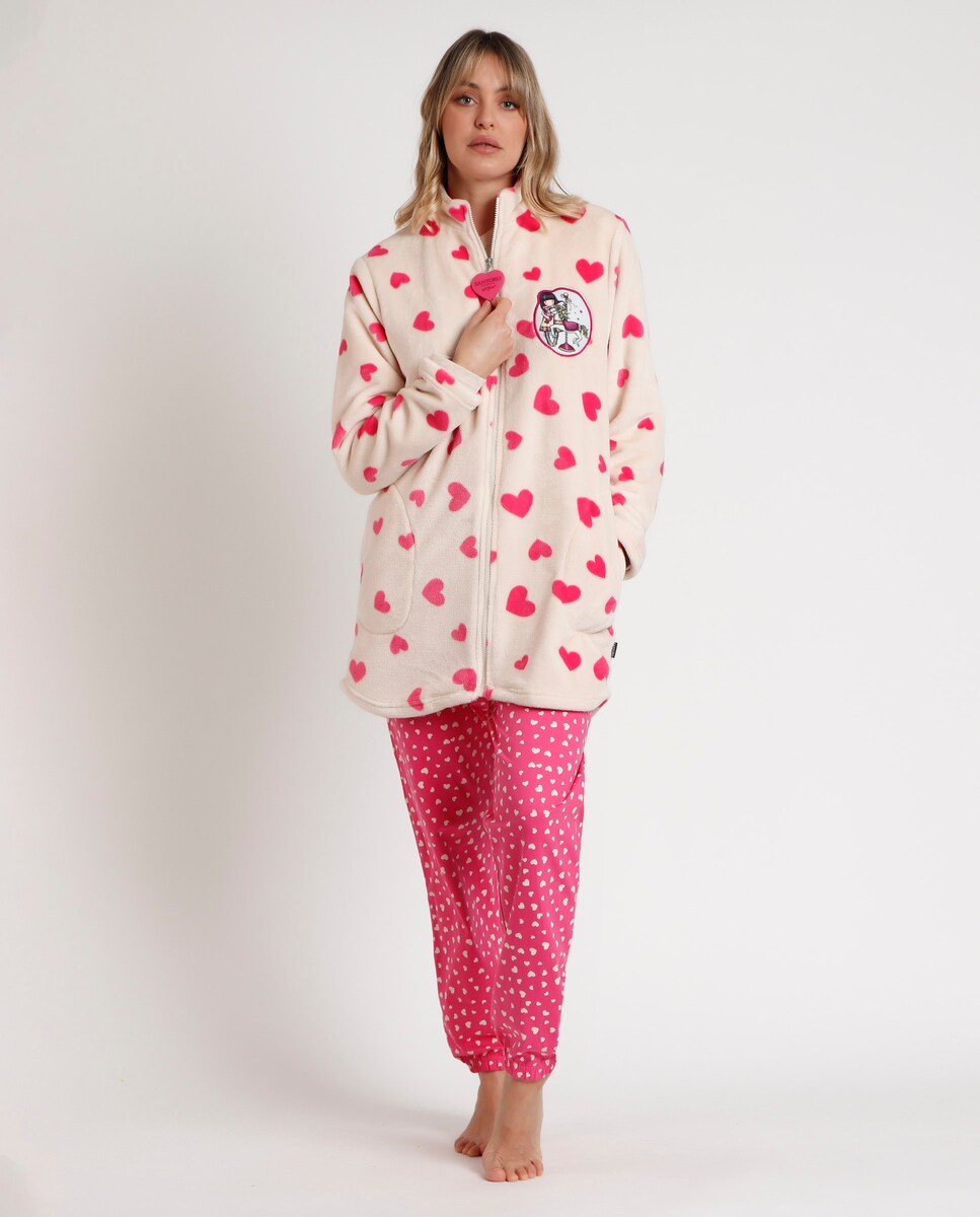 Bata de manga larga de mujer de tejido calentito de color rosa