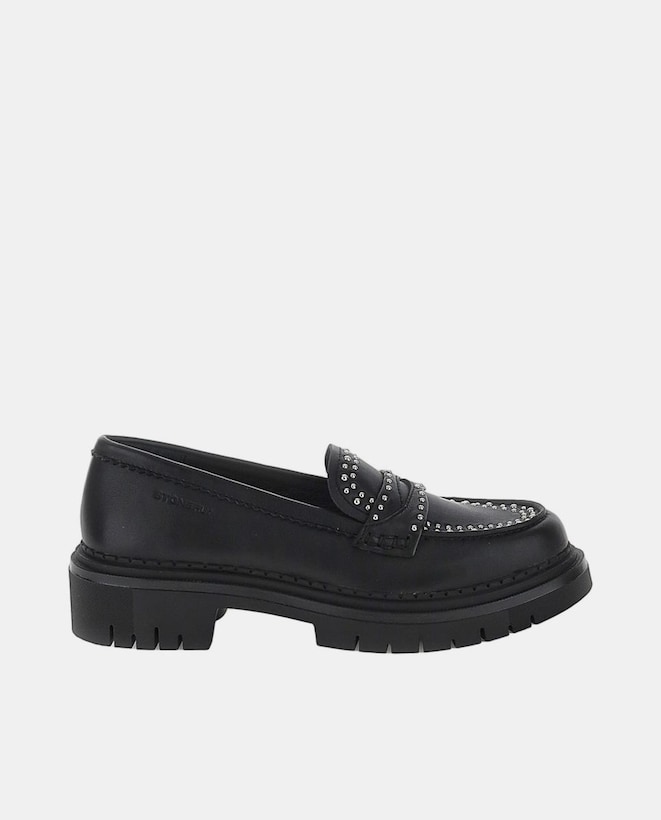 Zapatillas de mujer de piel Stonefly de color negro con cierre de cordones elásticos