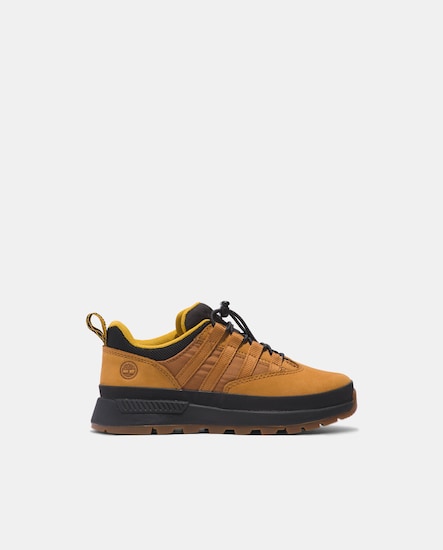 Botas de niño en amarillo tipo montaña de nobuk con suela bicolor dentada