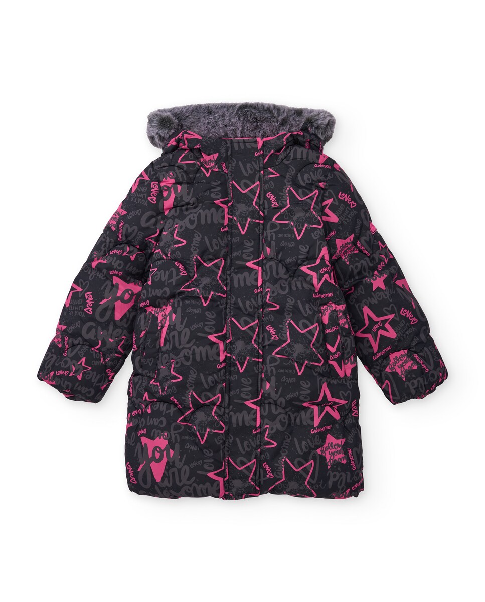 Abrigo acolchado de niña con estampado de estrellas y mensajes