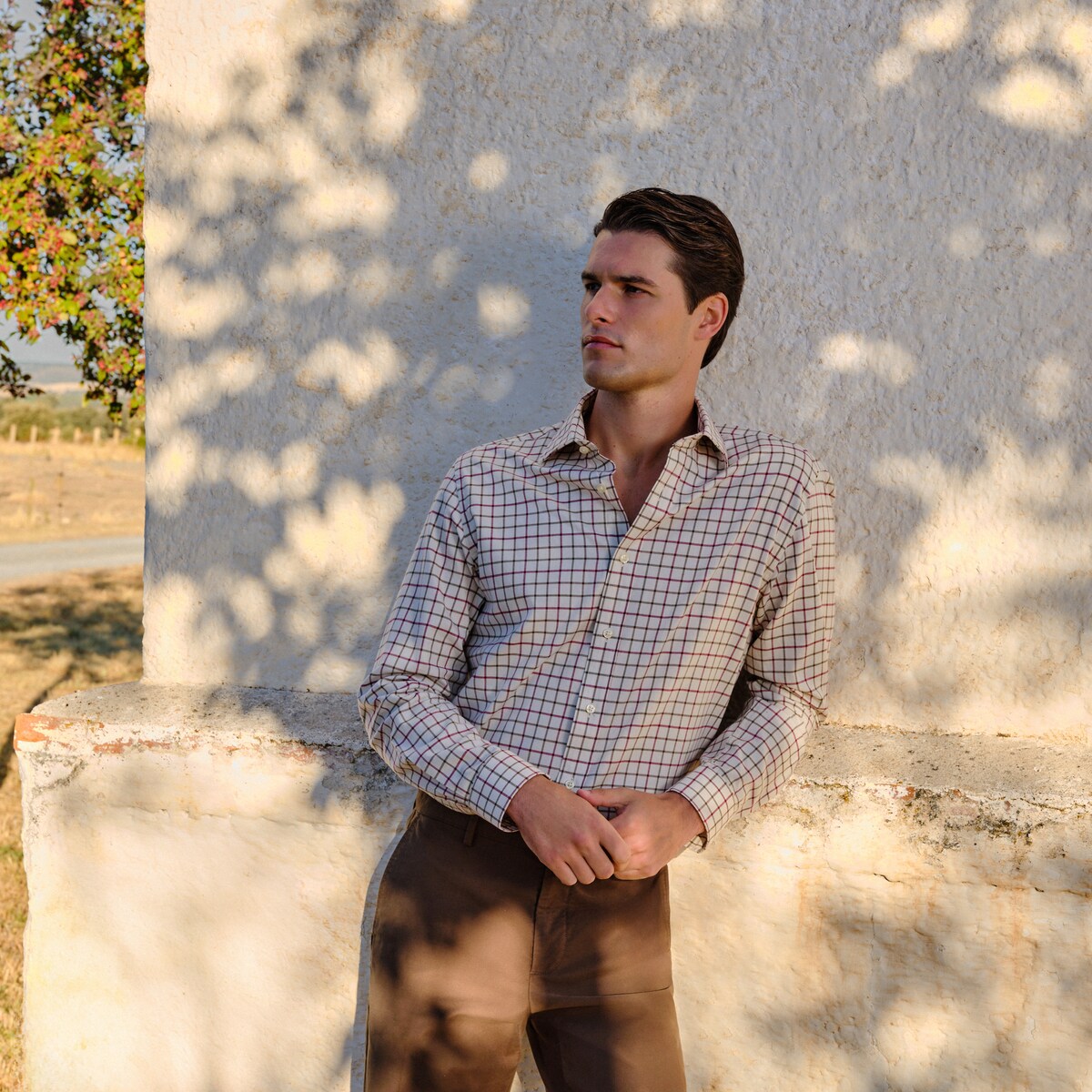 Camisa cuadro de hombre fondo beige